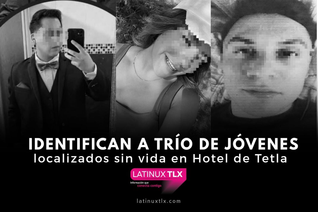 Los tres jóvenes encontrados sin vida en el hotel Catrina en Tetla de la Solidaridad fueron identificados como Vivaldo N., Michelle N., y Zaid N.