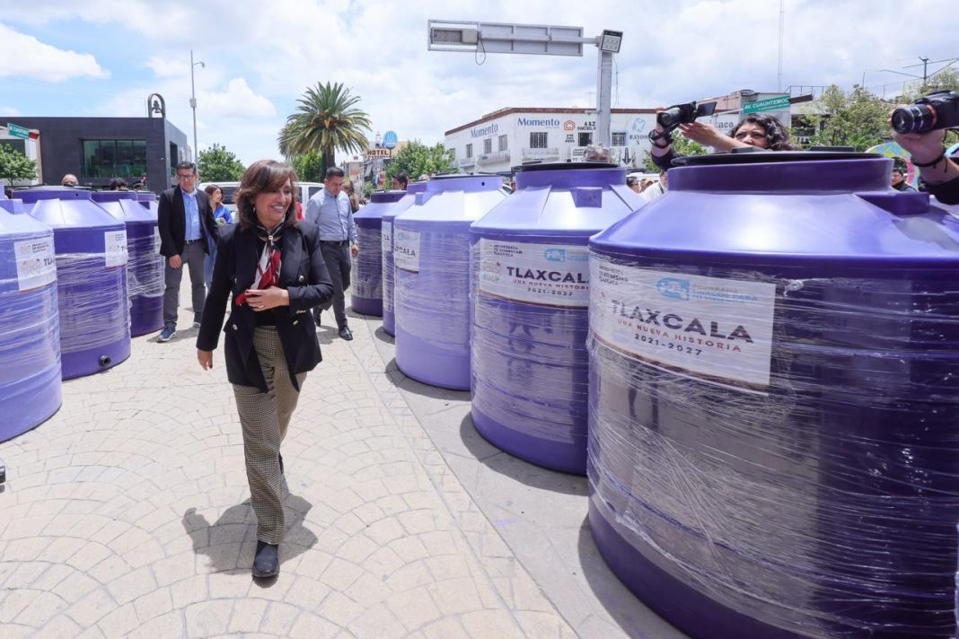 Entrega gobernadora Lorena Cuéllar 300 tinacos, en Apizaco