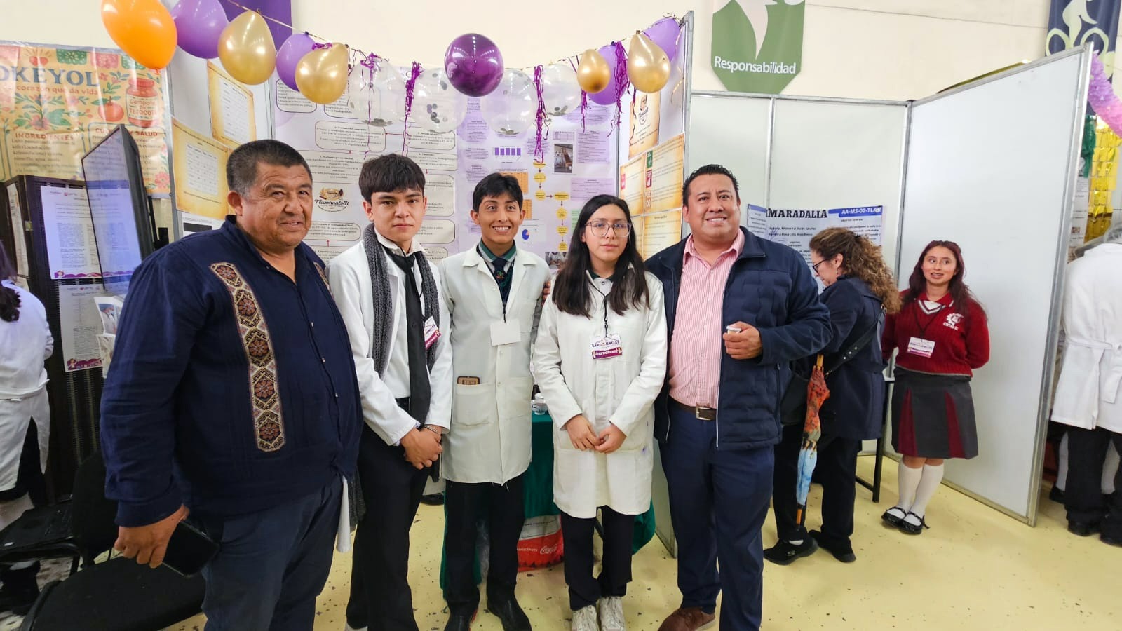 También obtuvo acreditación el proyecto “Tlazohuatolli”, en el que participaron los alumnos Nataly Celina Teomitzi González, Santiago Mendiola Ghenno y Cristian Adrián Ángeles González, del plantel CECyTE 08 Apetatitlán, con la guía del asesor Juan Mendiola Argüelles.