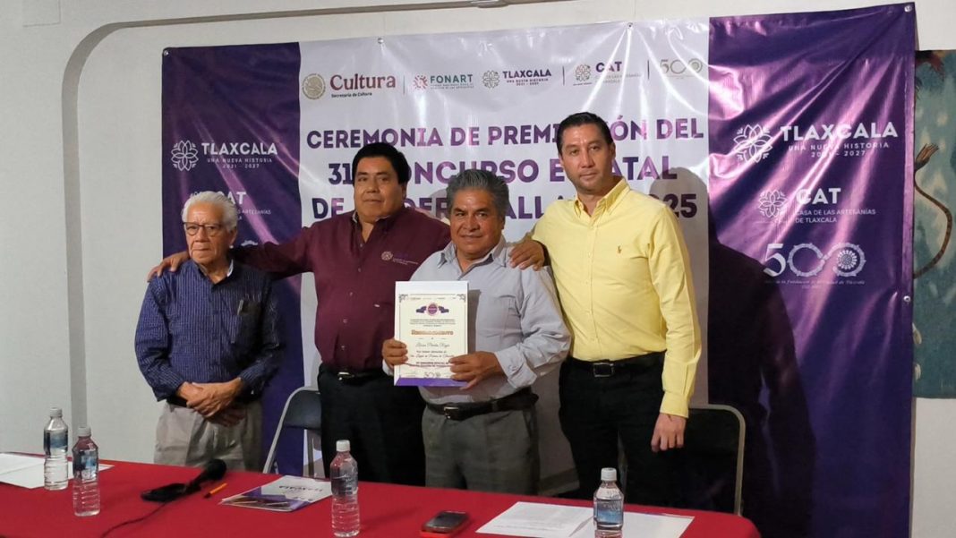 La Casa de las Artesanías de Tlaxcala (CAT) premió a los ganadores del XXXI Concurso Estatal de Madera Tallada 2025, en el que participaron 21 creadores, ocho mujeres y trece hombres, quienes recibieron una bolsa total de 126 mil pesos en estímulos económicos, producto de la aportación conjunta de los gobiernos estatal y federal.