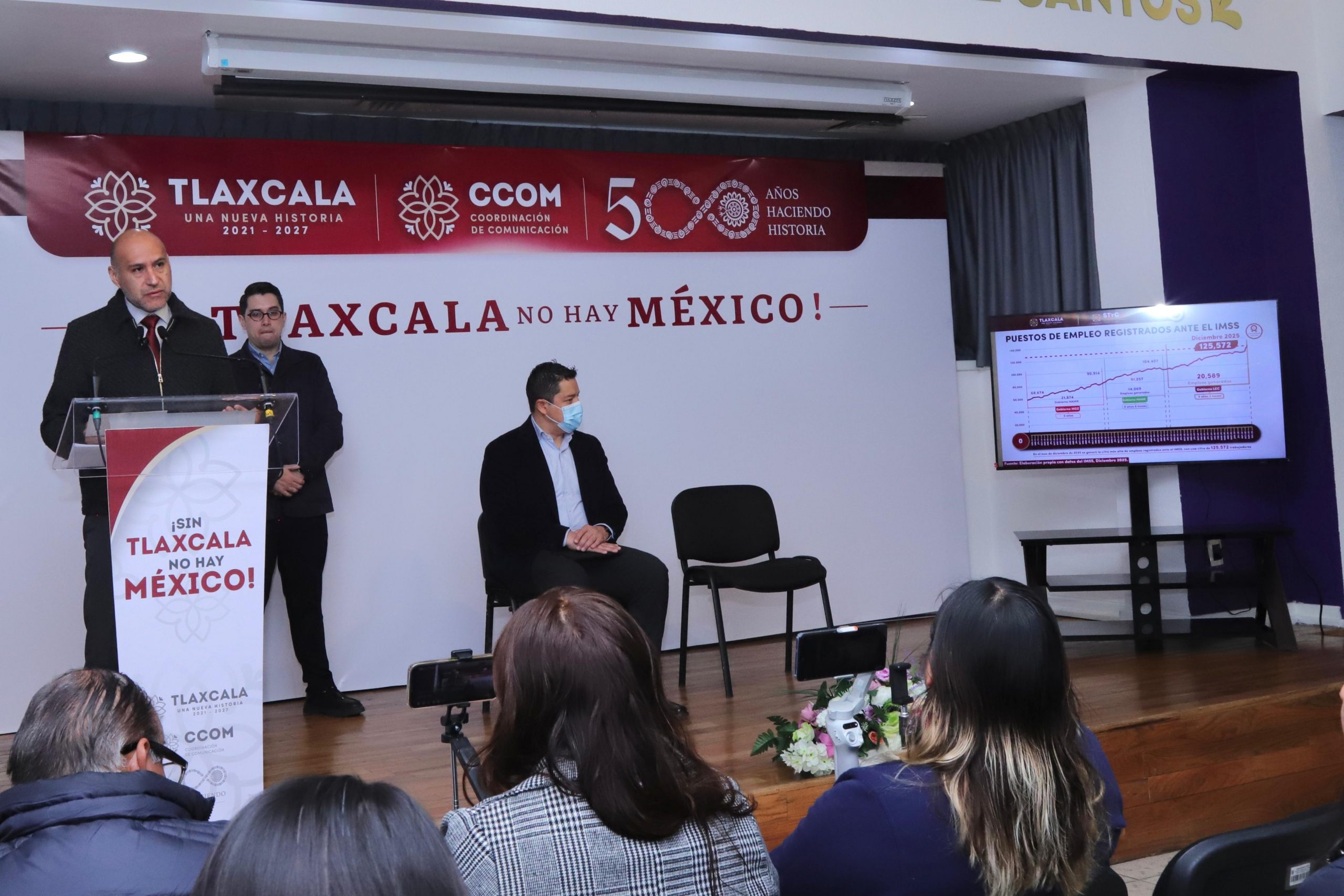 Altamirano Islas subrayó que Tlaxcala alcanzó el primer lugar nacional en crecimiento porcentual de empleo formal durante 2025, con un incremento cercano al 8 por ciento, de acuerdo con datos del Instituto Mexicano del Seguro Social (IMSS). “Este crecimiento nos permitió llegar a una cifra histórica de 125 mil 572 puestos de trabajo afiliados al IMSS”, puntualizó.